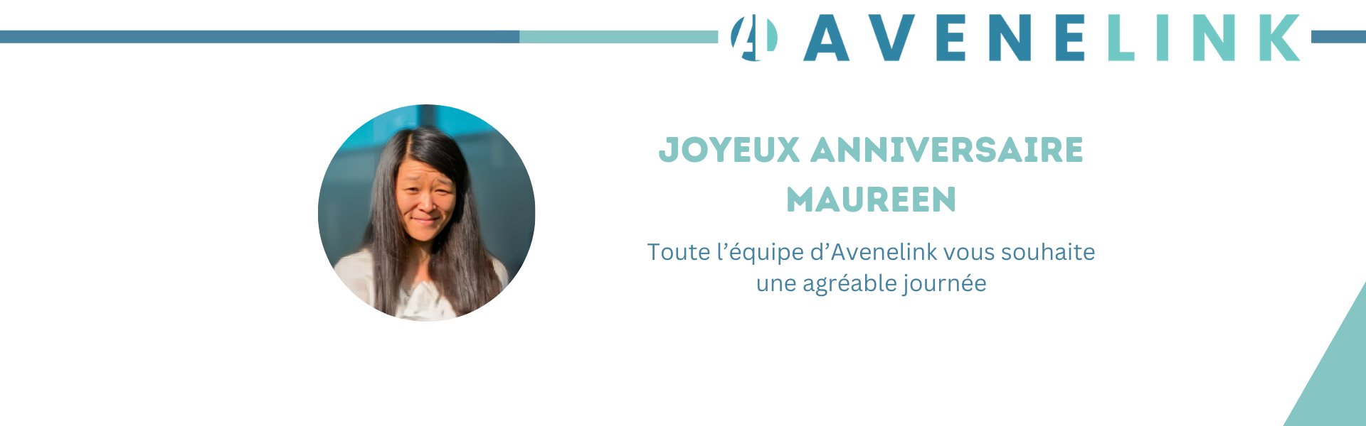 En ce jour particulier, toute l’équipe souhaite un joyeux anniversaire à Maureen Wong. Nous tenons à lui exprimer notre reconnaissance pour son engagement constant et son professionnalisme au sein de notre entreprise.